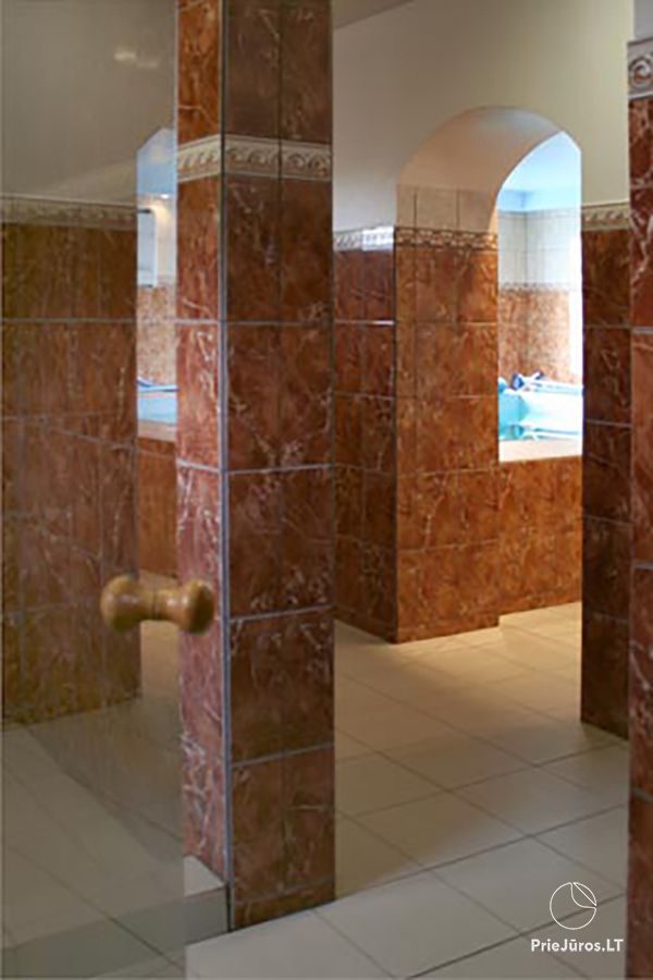- Pirts: min 3h 60 EUR. Viesu namā ir lieliska slapjā pirts, piemērota 8 cilv. Vienā reizē, pēc pirts var lieliski atvēsināties dušā, peldbaseinā vai jūrā.